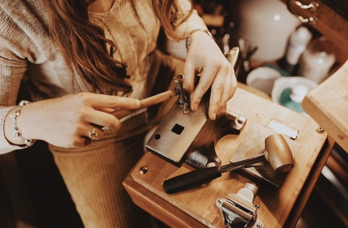 I’m Logan Lehmann, the proud owner & sole maker of all things Spellbound Jewelry Company. I started my journey at Northern Michigan University, a wonderful place nestled in the beautiful & scenic upper peninsula of Michigan, right on the shores of Lake Superior. It was there I found my true love for art & design. I pursued a degree in fine arts with a concentration in metalsmithing & sculpture, then graduated in 2018. Shortly after, I started L.G.L. Jewelry, the former brand of my company that I quickly grew into a full time job. But a change was needed in my scenery, so I packed up my bench & moved out west to Bozeman, Montana. I spent 5 years there creating, growing & thriving in a very progressive art scene.